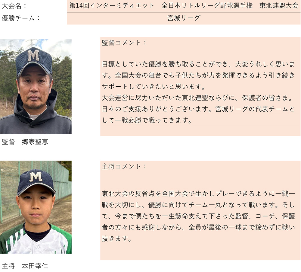 優勝は宮城リーグ、準優勝は岩手南リーグとなりました。